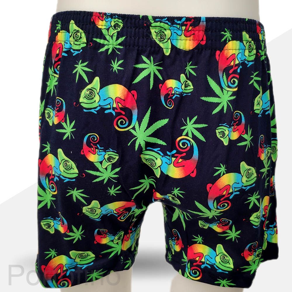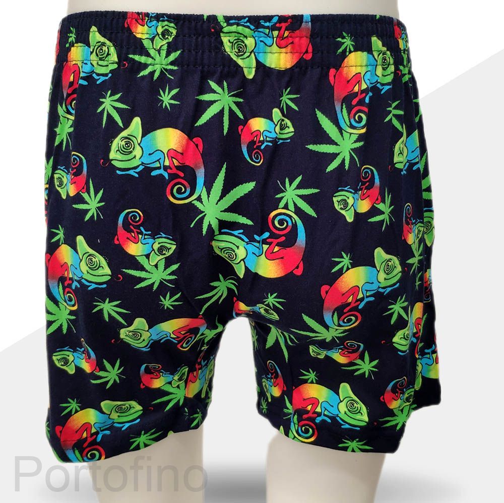 Трусы семейные из мягкого хлопка с рисунком хамельоны разноцветные прикольные. Широкая комфортная резинка и удобная посадка по фигуре. Прекрасное мужское белье на каждый день