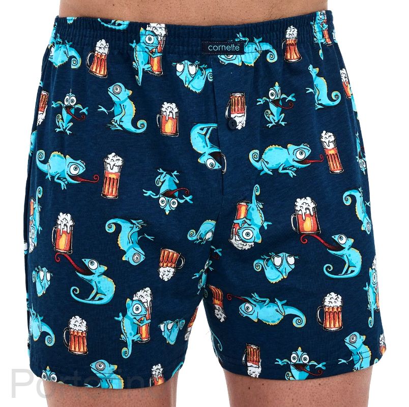 Трусы мужские семейные Cornette 001-175 — яркая и оригинальная модель для мужчин, которые любят комфорт и необычный дизайн. На тёмно-синем фоне расположены забавные рисунки хамелеонов и кружек с пивом, создающие весёлое настроение и подчёркивающие индивидуальность.