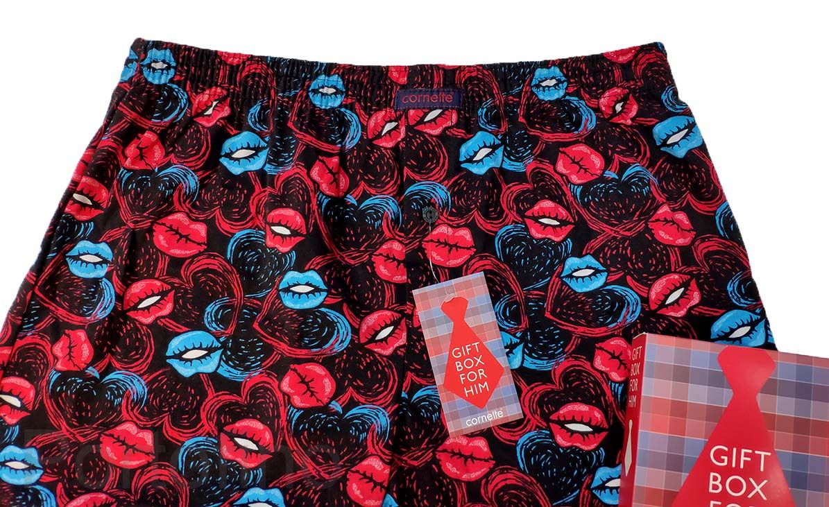 Качественные мужские семейные трусы свободного кроя из хлопка. Отличный подарок мужчине на день Святого Валентина. Комфортная широкая резинка и гульфик на пуговицах. подарочная упаковка и расцветка яркие губы.