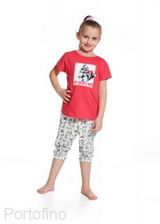 Отличная хлопковая пижамка для девочек. Футболка с коротким рукавом красного цвета. Короткие бриджи с рисунком по всему полотну. Новая коллекция 2017 года.