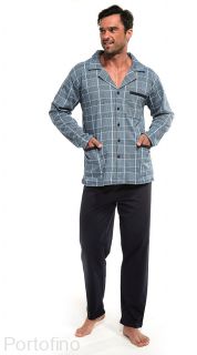 Пижама мужская хлопковая, состоит из рубашки с длинным рукавом и однотонных брюк. Отличный вариант для отдыха в пансионате или санатории.