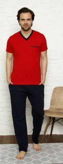Пижама мужская из качественного хлопка для домашнего отдыха. Комплект состоит из футболки с длинным рукавом и однотонных брюк