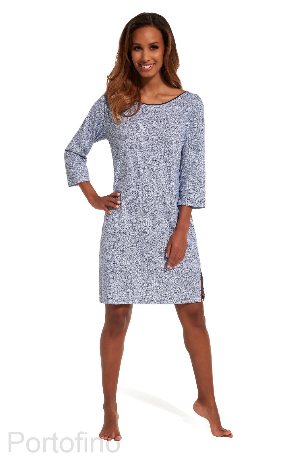 Женская сорочка с длинным рукавом из комбинированного полотна с геометрическим рисунком. Отличная домашняя сорочка на каждый день.