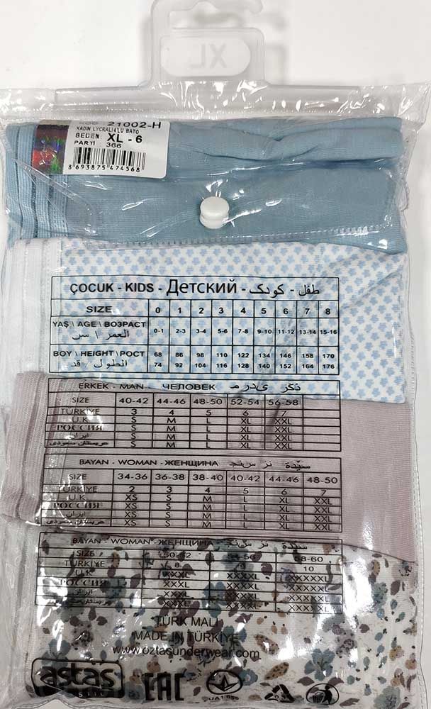 Размерная сетка женского белья Oztas