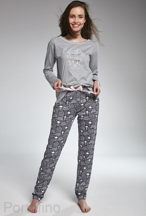 Стильная пижама для молодых девушек из мягкого хлопка в сером цвете. Комплект домашней одежды от польского производителя Корнет.