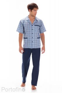 Классная мужская пижама состоит из свободной рубашки и однотонных брюк. Отличная пижама для отдыха и дома.