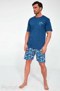 Пижама мужская из мягкого хлопкового полотна. Футболка с коротким рукавом и шорты морской тематики. Отличный домашний комплект для отдыха.