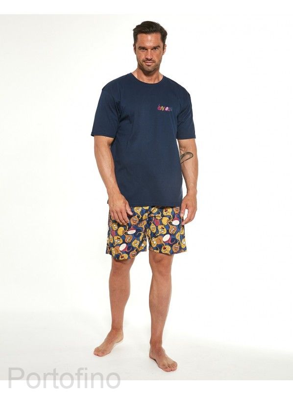 Пижама мужская из качественного хлопкового полотна, домашний комплект для комфортного отдыха. комплект состоит из; футболка с коротким рукавом синего цвета и яркие Шорты с забавным рисунком рукавицы. Пижама в яркой подарочной упаковке, отличный подарок на День защитника Отечества или День Святого Валентина.