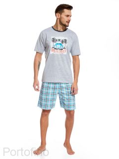 Мягкая,хлопковая пижама мужская состоящая из футболки с коротким рукавом и шорт в клетку. Превосходная пижама для домашнего отдыха и сна летом.