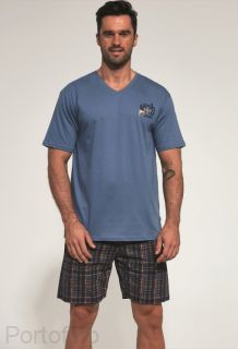 Пижама мужская из мягкого и комфортного хлопкового полотна. Состоит из футболки с коротким рукавом и шорты с рисунком в клетку. Отличный вариант для домашнего отдыха и приятного сна.