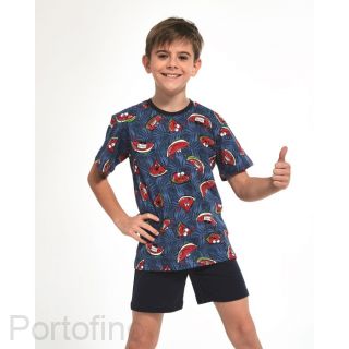 Красивая, прикольная пижама для мальчиков из мягкого хлопка с футболкой с коротким рукавом рисунок арбузы. Однотонные комфортные шорты.