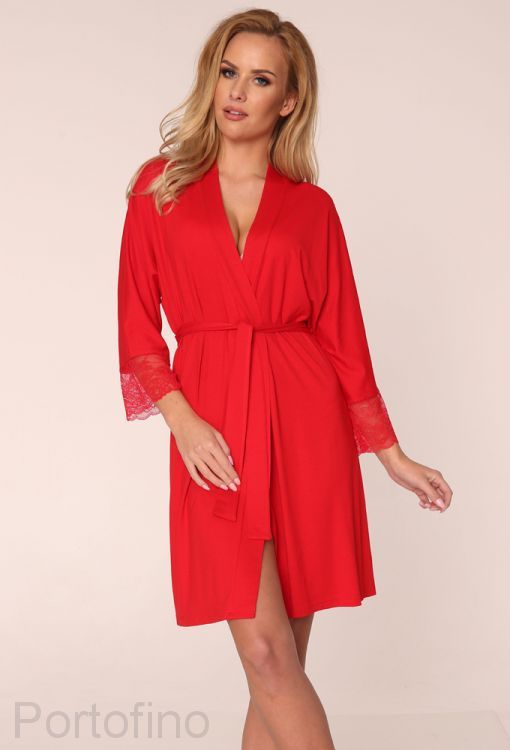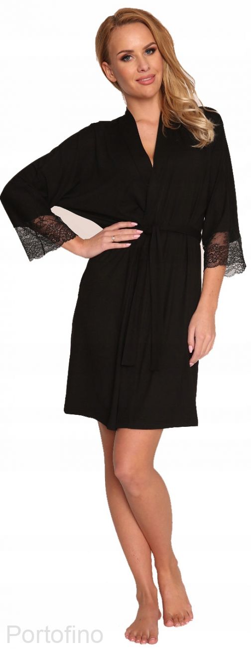 Халат женский высокого качества вискоза 94% и добавлением спандекса. Короткий, завязывается на талии, с рукавом 7/8. Манжеты отделаны ажурным кружевом.