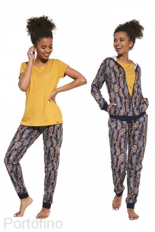 Женская пижама состоит из 3 предметов , прекрасный комплект для домашнего отдыха. Футболка с коротким рукавом, брюки и кофта.