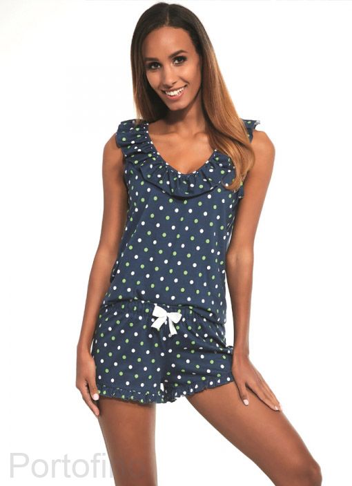 Пижама женская из нежного хлопкового полотна с рисунком в горошек.
