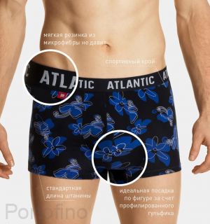 мужские трусы-шорты 3MH-167 темно-синего цвета от польского бренда Atlantic. Эти трусы-шорты идеально подходят для повседневной носки или активных занятий спортом. Спортивный крой этой модели анатомически выверен для идеальной посадки по фигуре и максимального комфорта. Внешняя пришивная резинка не скручивается, не давит и не натирает при носке. Облегающий дизайн трусов-шорт имеет среднюю линию талии и стандартную длину штанин, что позволяет носить их с любой одеждой. Благодаря этому нижнее белье сохраняет свою форму и потребительские свойства на долгое время. В упаковке представлены три модели темно-синего цвета - две с контрастным растительным принтом в виде цветов гибискуса и одна однотонная модель.