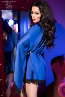 Стильный мини халатик для девушки арт. 4112. Халатик из глянцевого атласа, рукава и низ украшены изящным чёрным  кружевом.