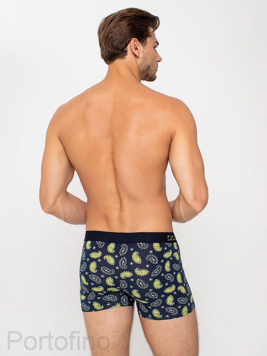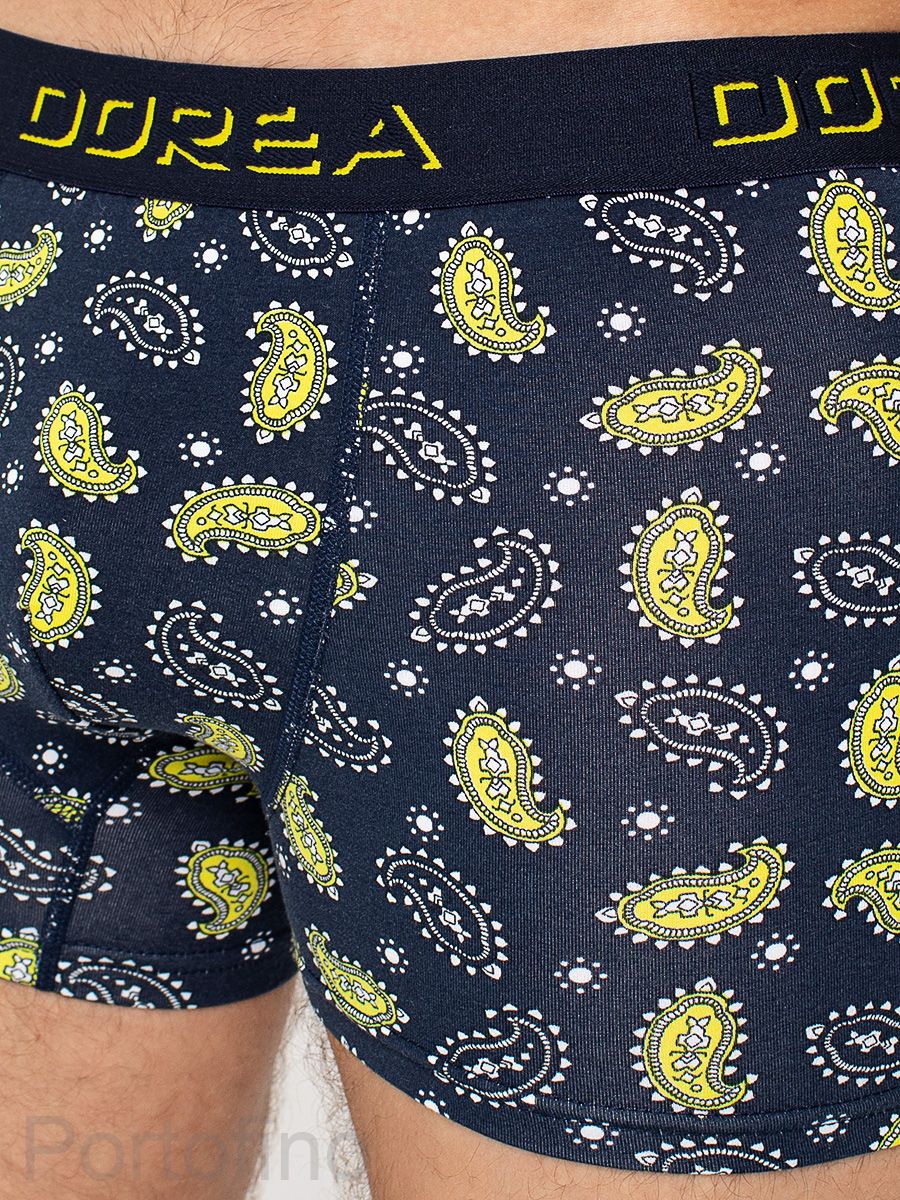 Мужские трусы из мягкого хлопка с комфортной резинкой с логотипом Dorea с ярким геометрическим рисунком.