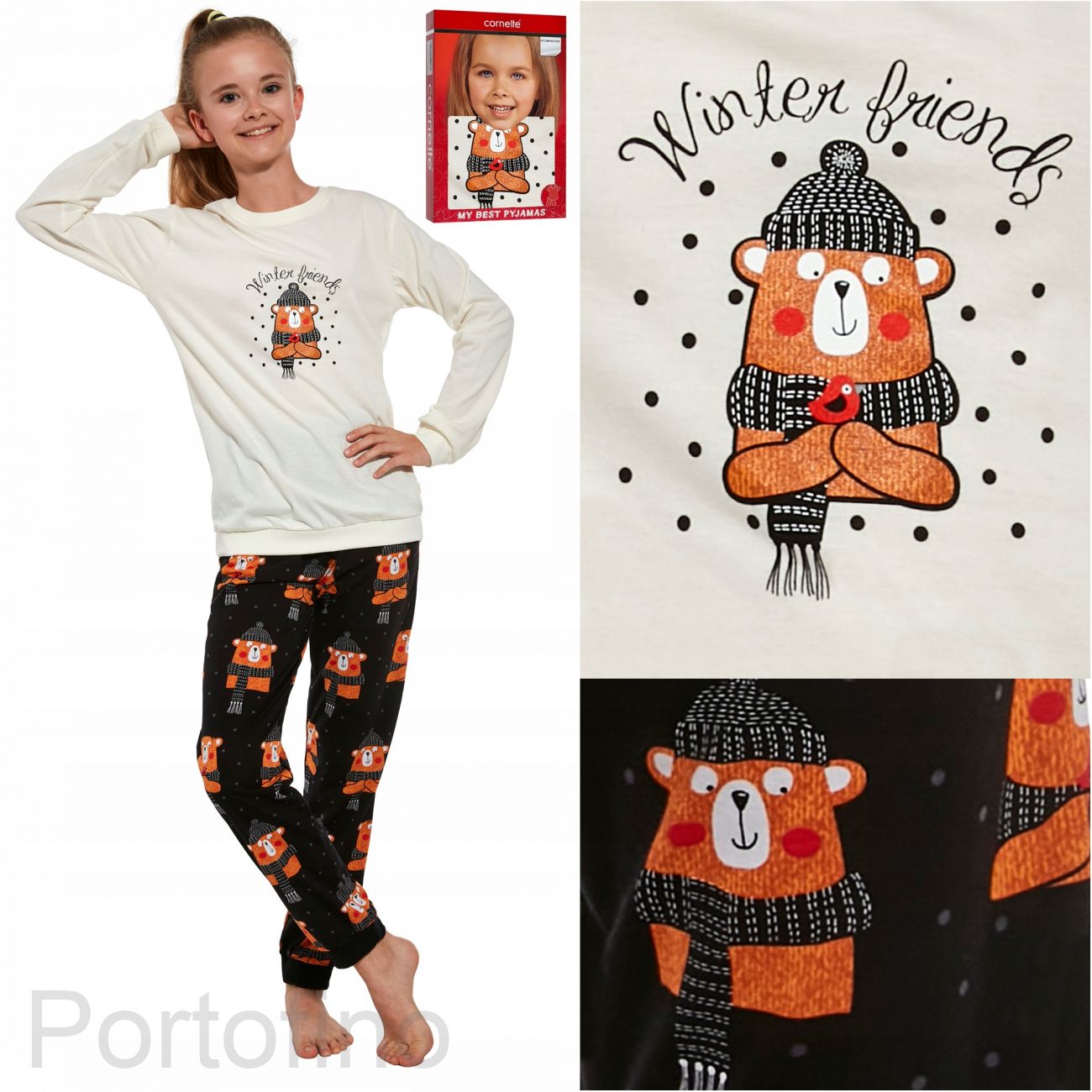 Пижама Cornette 592-160 - это стильная и удобная пижама для девушек. Изготовлена из мягкого и качественного хлопка, обеспечивая комфорт и приятные тактильные ощущения. Комплект пижамы состоит из однотонной кофты молочного цвета и брюк на манжетах.