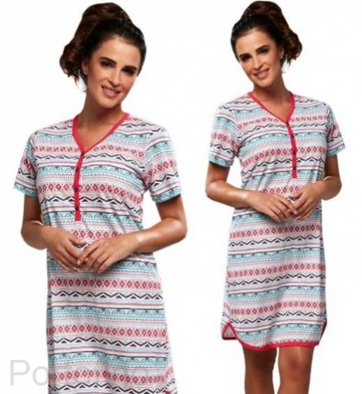 Красивая женская сорочка из мягкого хлопкового полотна. Геометрический рисунок и короткий рукав.