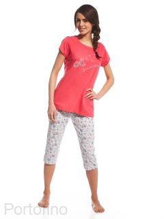 Великолепная женская пижама из мягкого и нежного хлопка. Футболка красного цвета с коротким рукавом и бриджи 3/4 длинны с цветочным рисунком. Качественное домашнее белье на летний период.