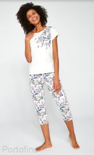 Стильная пижама в большом размере. Футболка с коротким рукавом, и интересные бриджи с цветочным рисунком.