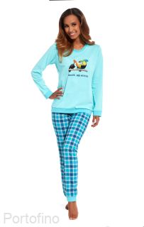 Модная женская пижама из хлопка. Интересный рисунком в виде туканов. Яркий бирюзовый цвет.Новая коллекция ночного белья для женщин 2017 года