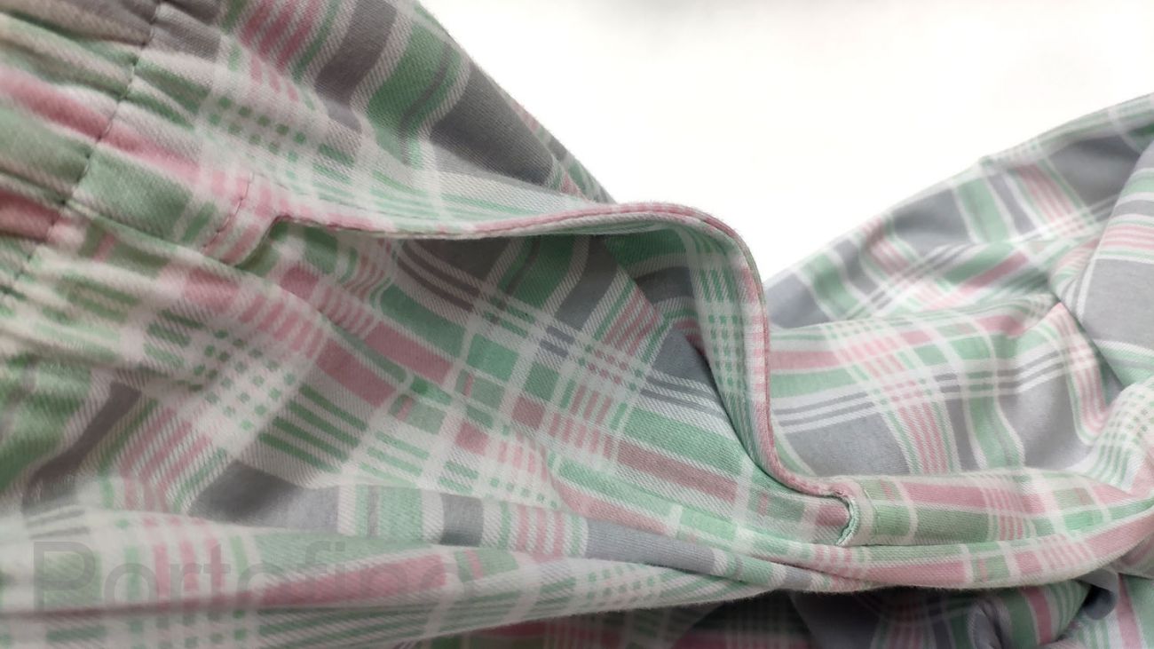 Расцветка: клетка — серый фон, пудрово-розовые и мятные акценты.