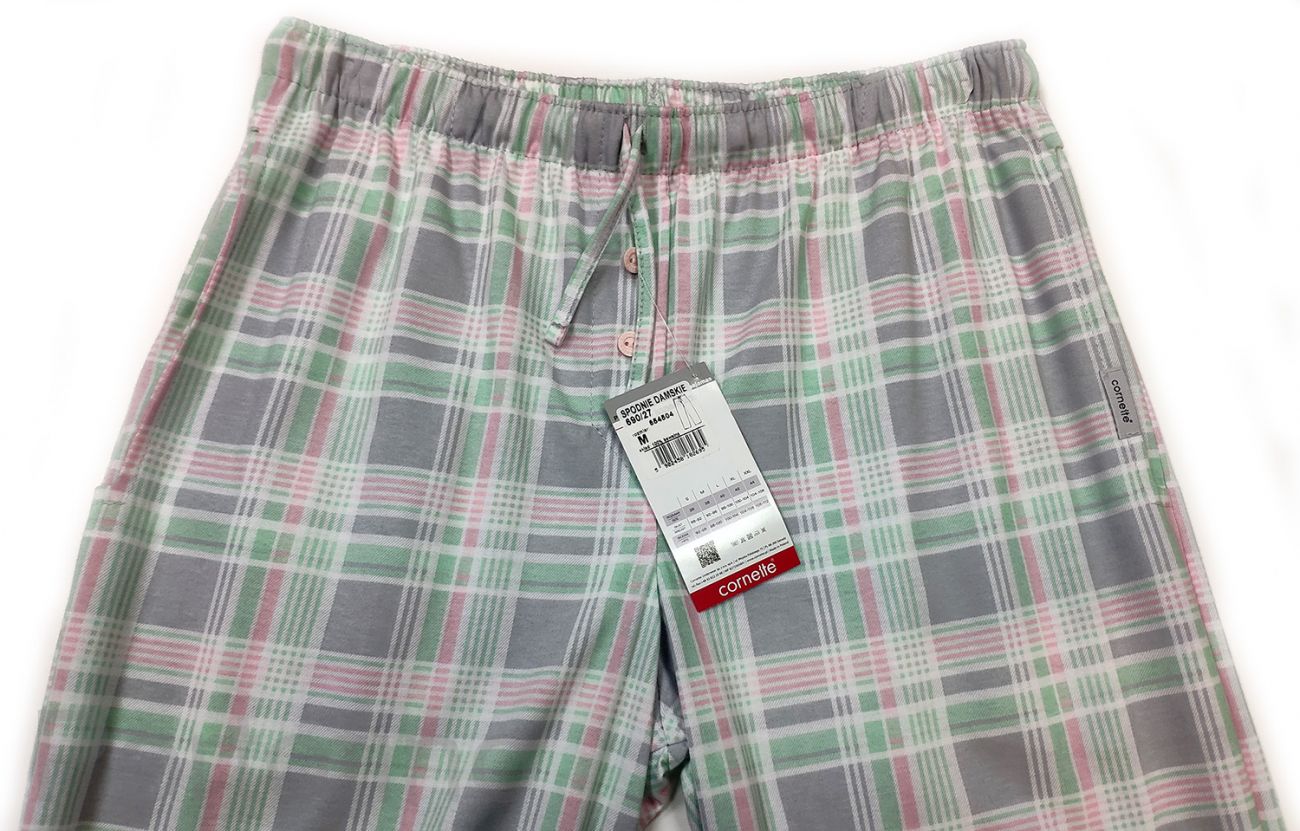 Cornette 690-27 — женские пижамные брюки из 100% хлопка в уютной клетке с мягкой цветовой гаммой: базовый серый фон, подчеркнутый пудрово-розовыми и тонкими мятными акцентами. Такая расцветка выглядит свежо и деликатно, легко сочетается с белыми, серыми, пудровыми и мятными верхами, собирая гармоничные домашние комплекты без лишних усилий. Натуральный хлопковый трикотаж приятен к коже, дышит и помогает поддерживать комфортный микроклимат — оптимально для круглогодичного использования в помещении.