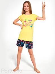 Пижама для девочек из качественного хлопкового полотна. Домашний комплект состоит из футболки с коротким рукавом и элегантных шорт. Высокое качество для отличного подарка
