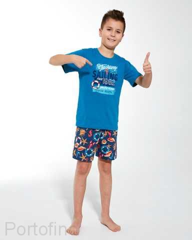 Пижама для мальчиков из мягкого и комфортного хлопка. Домашний комплект состоит из Футболки с коротким рукавом и шорт с рисунком морской тематики. Отличный подарок для молодого человека на День рождения или праздник