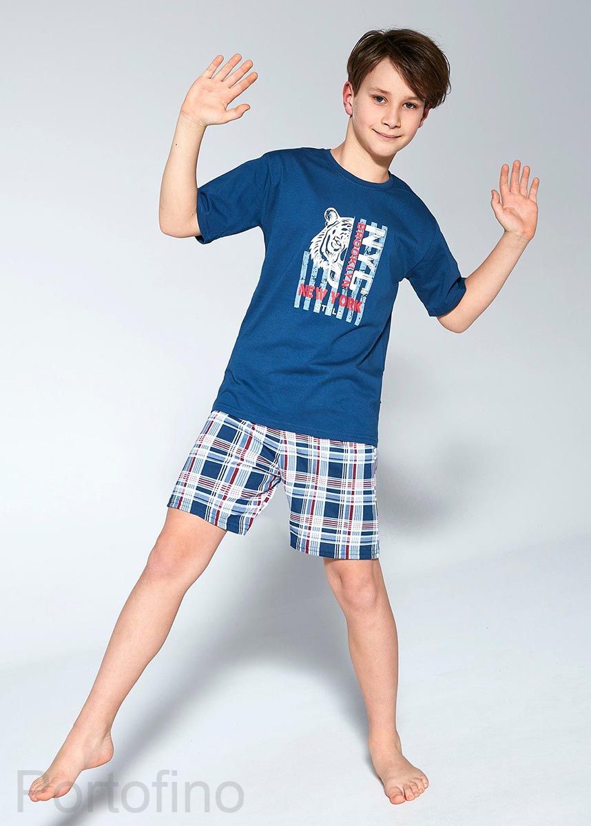 Стильная пижама для мальчиков из качественного хлопкового полотна. Футболка с коротким рукавом и шорты в клетку. Отличный комплект для домашнего отдыха