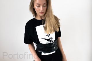 Gracija RIM арт. 80560 широкий пояс для девушки. выполнен из кожи, декорирован двойными лямками. Хорошо смотрится с платьями, рубашками и футболками. Новинка 2018 года.