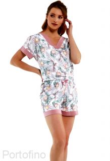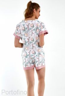 Женская пижама с цветочным рисунком - это идеальный выбор для комфортного и стильного домашнего отдыха. Комплект состоит из футболки свободного кроя с v-образной горловиной и элегантных коротких шорт. Футболка выполнена из мягкого материала, который обеспечивает комфорт и свободу движения, а также имеет привлекательный внешний вид благодаря цветочному рисунку. Короткие шорты также выполнены из качественного материала и имеют приятный на ощупь узор, который дополнит общий стильный образ. Эта пижама идеально подходит для тех, кто ценит комфорт и стиль, а также ищет качественный домашний комплект.
