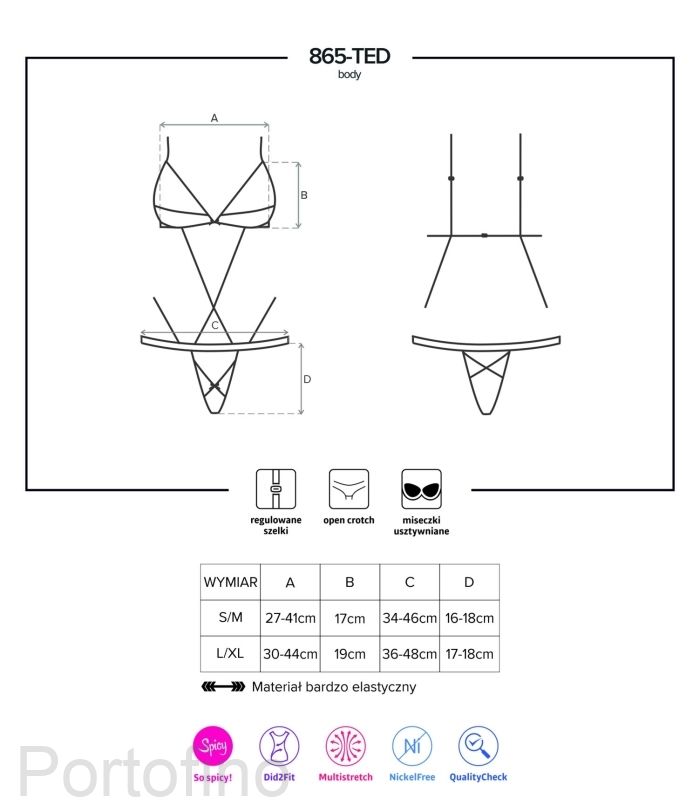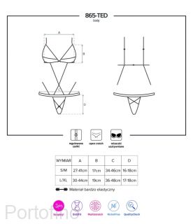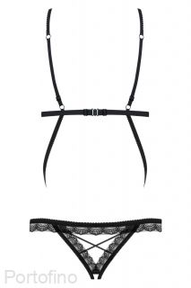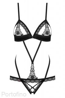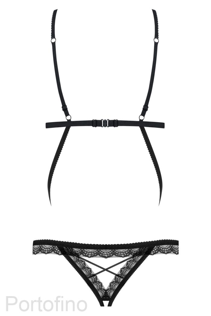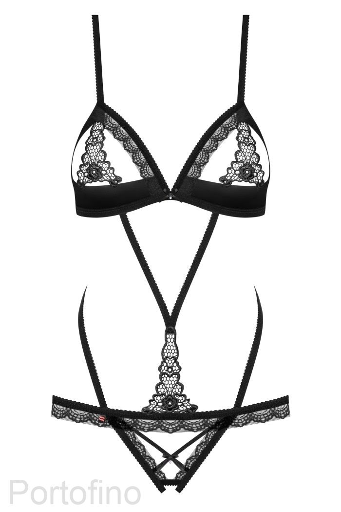 Откровенное женское боди трикини с открытой ластовицей из коллекции 865. Чашечки мягкие, грудь прикрыта кружевом, тонкие бретельки регулируются по длине, на спине застёжка. Лиф и трусики соединены тонкими эластичными союзками. Продается в фирменной красочной коробке. Новинка 2019 года.