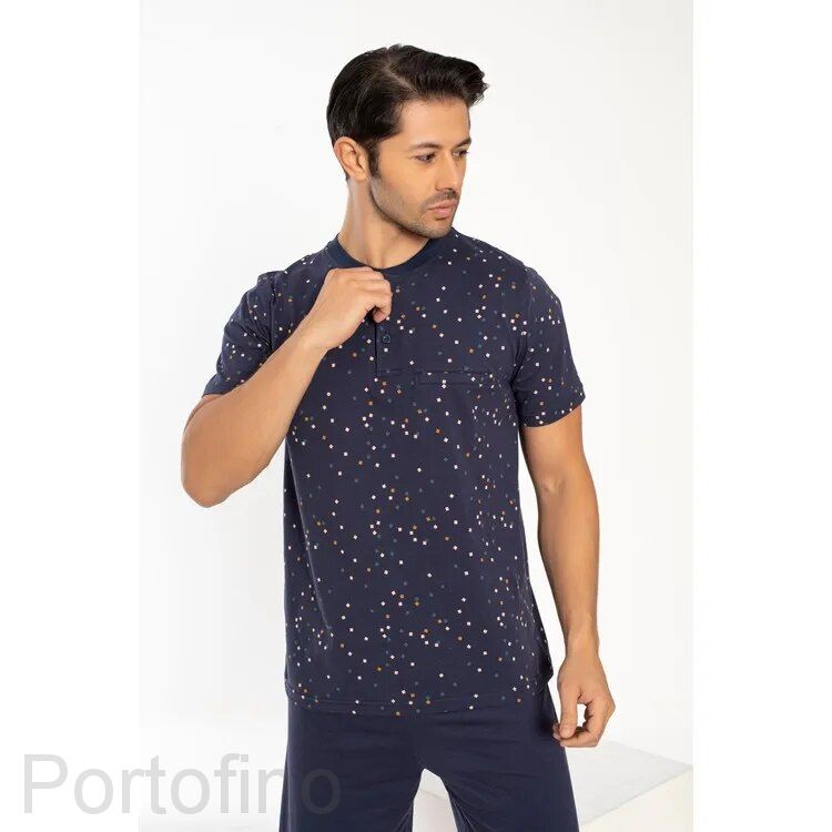 Мужская пижама 940-025 Confeo - это стильная и комфортная пижама, которая подойдет для повседневной носки и отдыха. Она состоит из футболки с коротким рукавом и шорт. Футболка выполнена из мягкого и приятного на ощупь материала, который обеспечивает максимальный комфорт и приятный контакт с кожей. Она имеет круглый вырез горловины и красивый рисунок.
