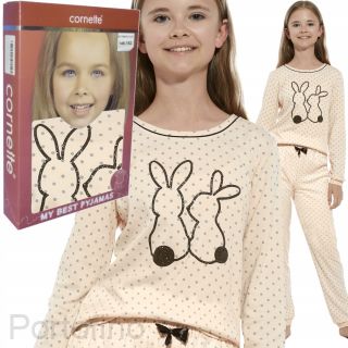 Стильная пижама для девочек из мягкого хлопка с рисунком кролики. Символ наступающего года, отличный и полезный подарок для домашнего отдыха и комфортного сна.