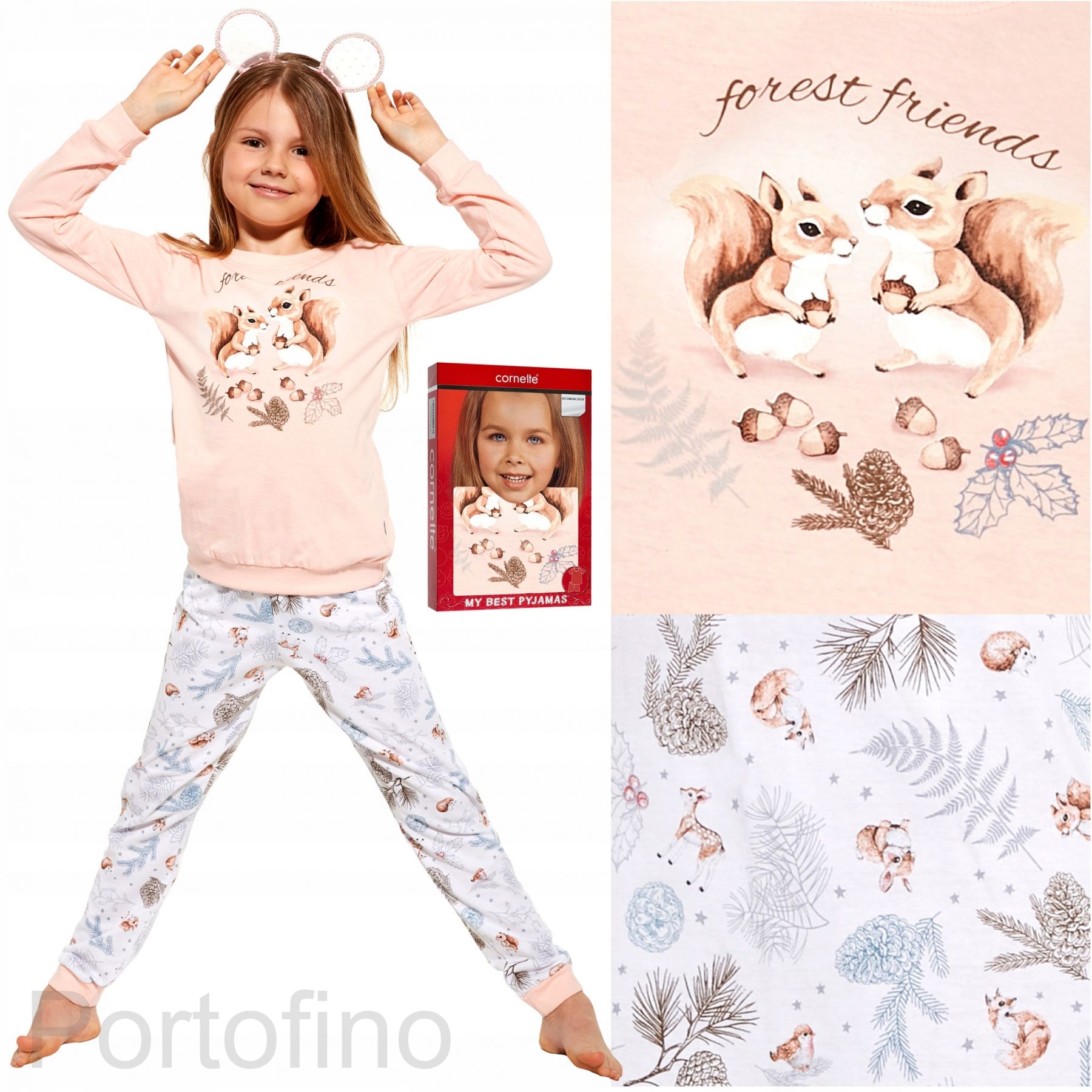 Красивая пижама для девочек из качественного хлопкового полотна. Прекрасный вариант для домашнего отдыха или rрепкого сна. комплект состоит из футболки с длинным рукавом с рисунком белочки и брюки на манжетах внизу. пижама упакована в красивую коробку что послужит отличным подарком для ребенка.
