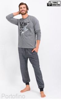 Стильная мужская пижама из качественного хлопкового полотна. Футболка с длинным рукавом в двух вариантах серого и синего цвета спереди графический рисунок.