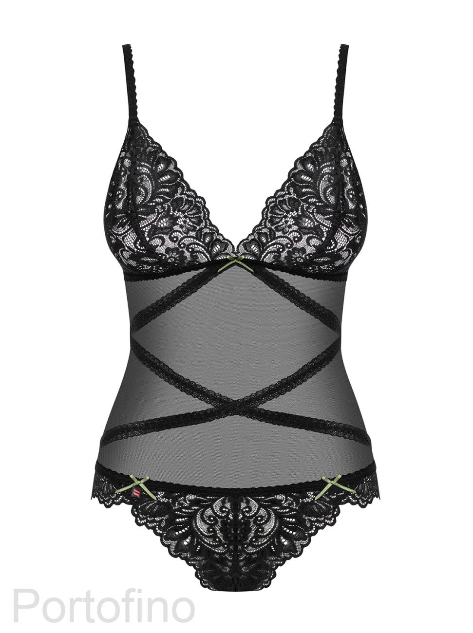 Боди женское из серии Bondea Obsessive: создано из эластичной сетки, бюст и трусики панти из кружева, бюст мягкий, без косточек, бретели регулируются по длине. Боди декорировано эластичными лентами, обхватывающими стан и милыми бантиками.