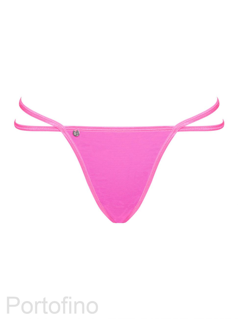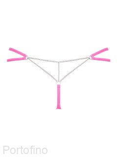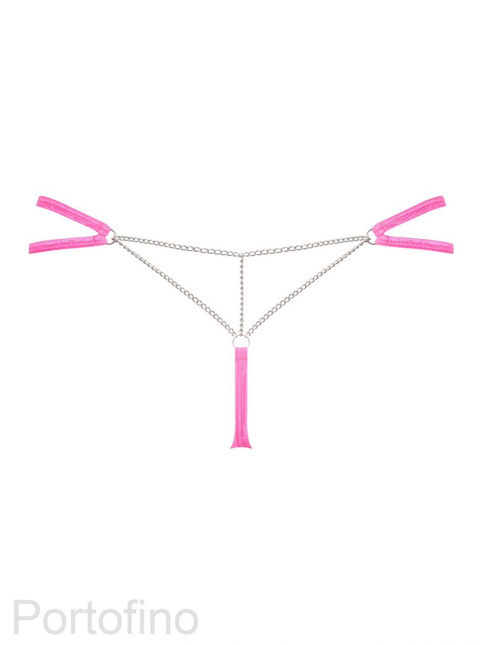 Трусики женские стринг Chainty неоново-розового цвета, с двумя союзками, на спинке из цепочек.