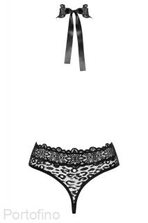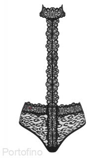 Дерзкое боди-стринг Crossita: высокие трусики соединены с чокером широким кружевом, на шее сзади бант из атласных лент.