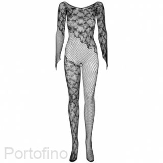 Эластичный, кружевной кэтсьюит с длинными рукавами (чулок на тело) и открытой промежностью, для девушки.