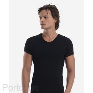 Футболка мужская черная V-образный вырез горловины A1061, Oztas