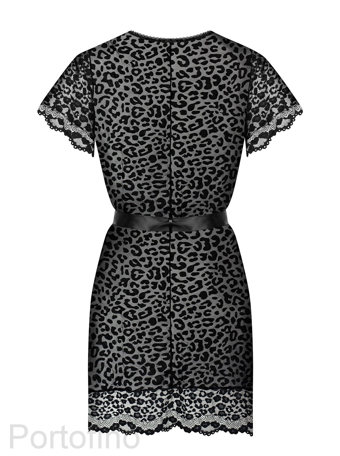 Очаровательный пеньюар для женщин из коллекции Giully с короткими рукавчиками из полупрозрачной вуали с хищным рисунком. Глубокий вырез на груди декорирован изящным кружевом, на талии пояс из атласной ленты.