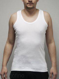 Классическая белая майка из хлопкового полотна. Прекрасная модель мужского белья на каждый день. Лямка классической ширины.
