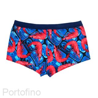 Яркие купальные шорты мужские с рисунком креветки. Отличная модель для летнего отдыха на море.