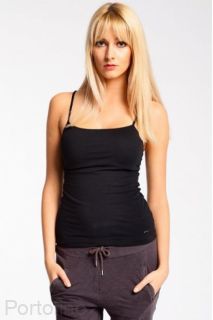 Майка на тонких бретельках из мягкого хлопка Вырез полукруглый. Благодаря добавлению эластана прекрасно садится по фигуре.