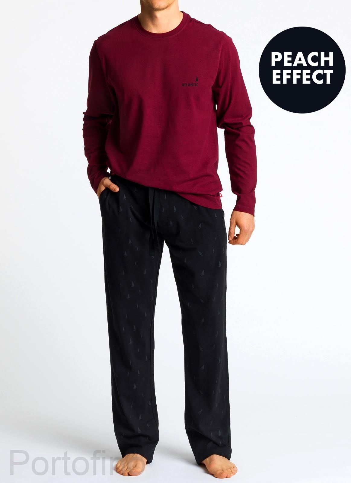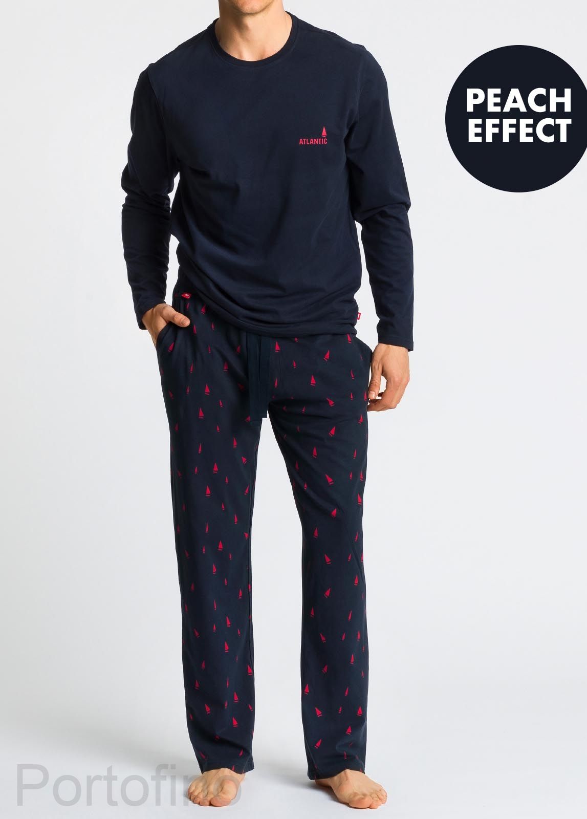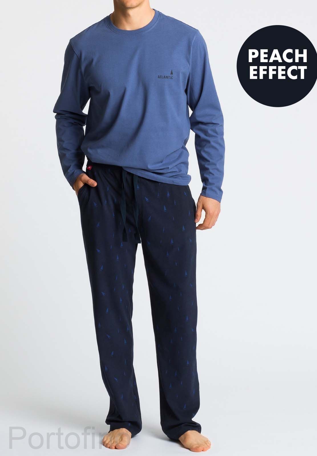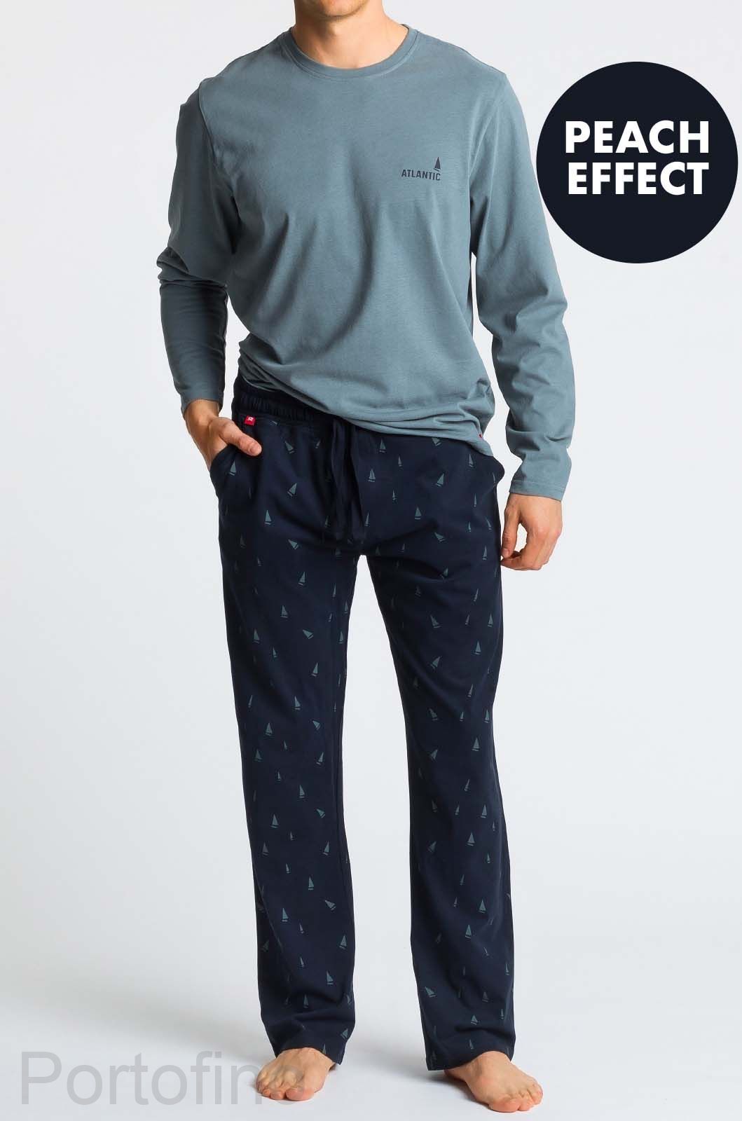 Пижама мужская из хлопка польской марки Atlantic. Отличный комплект домашней одежды для отдыха._x000D_ Футболка с длинным рукавом и круглым вырезом, и брюки прямого кроя на шнурке и широкой резинке.
