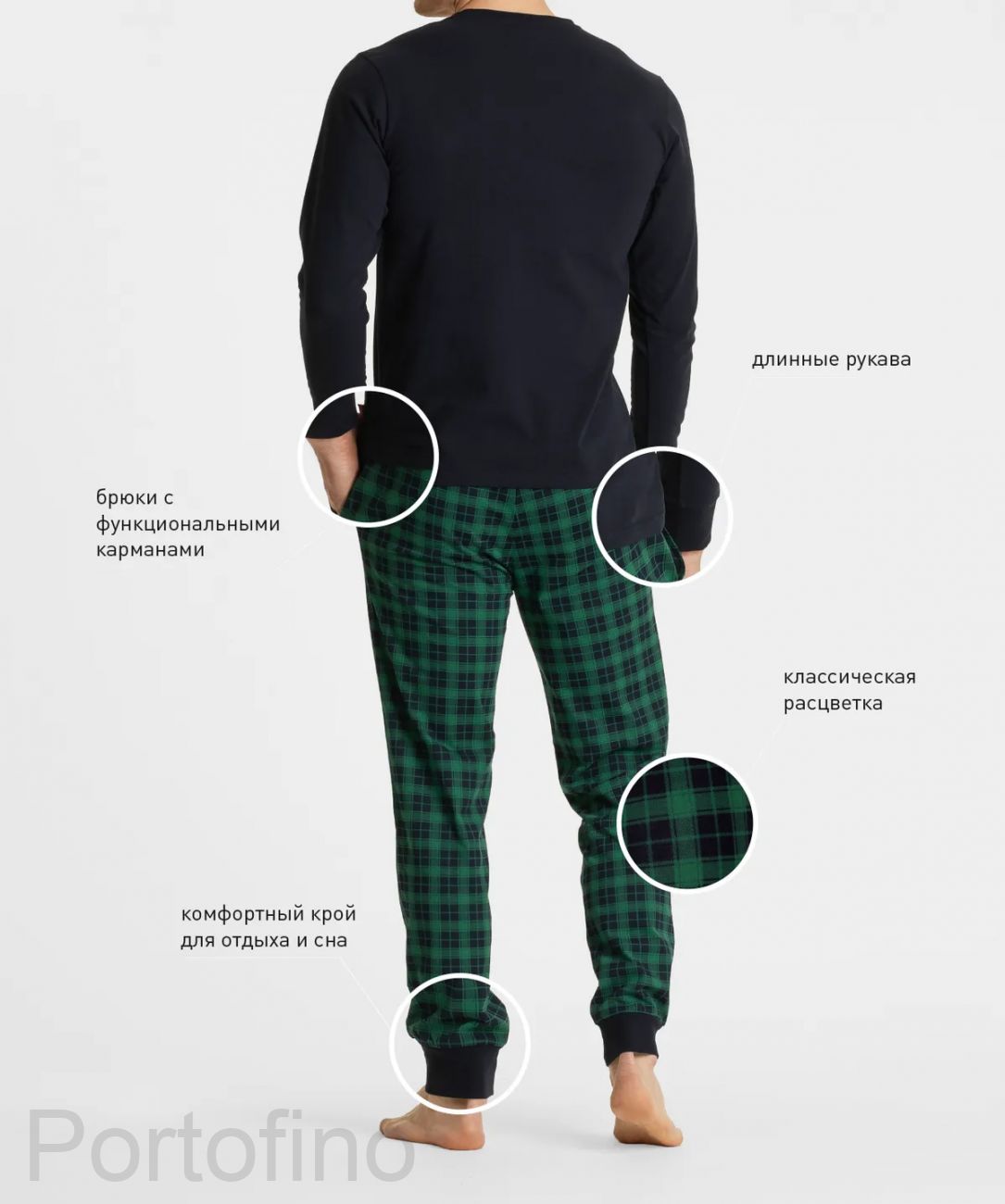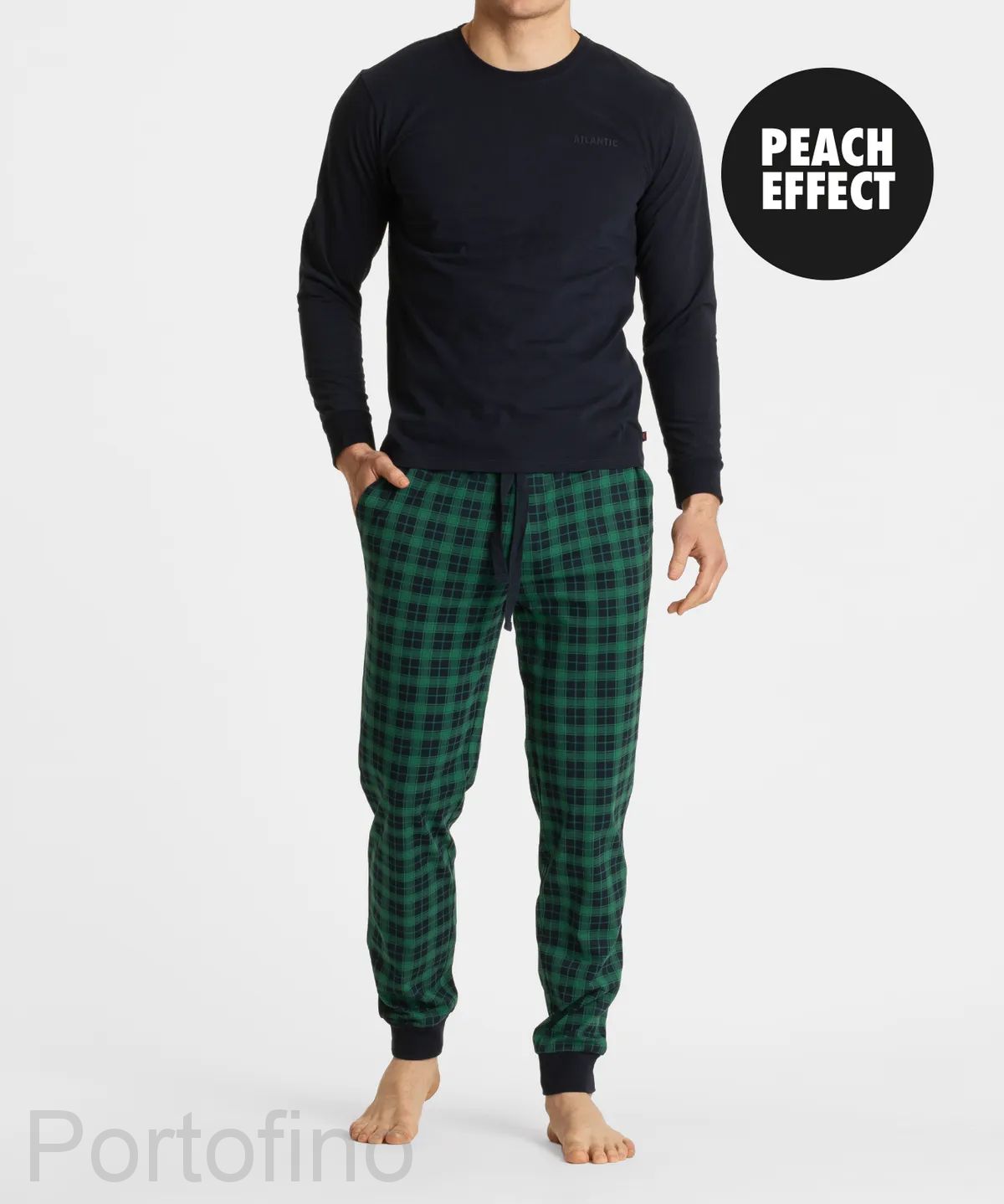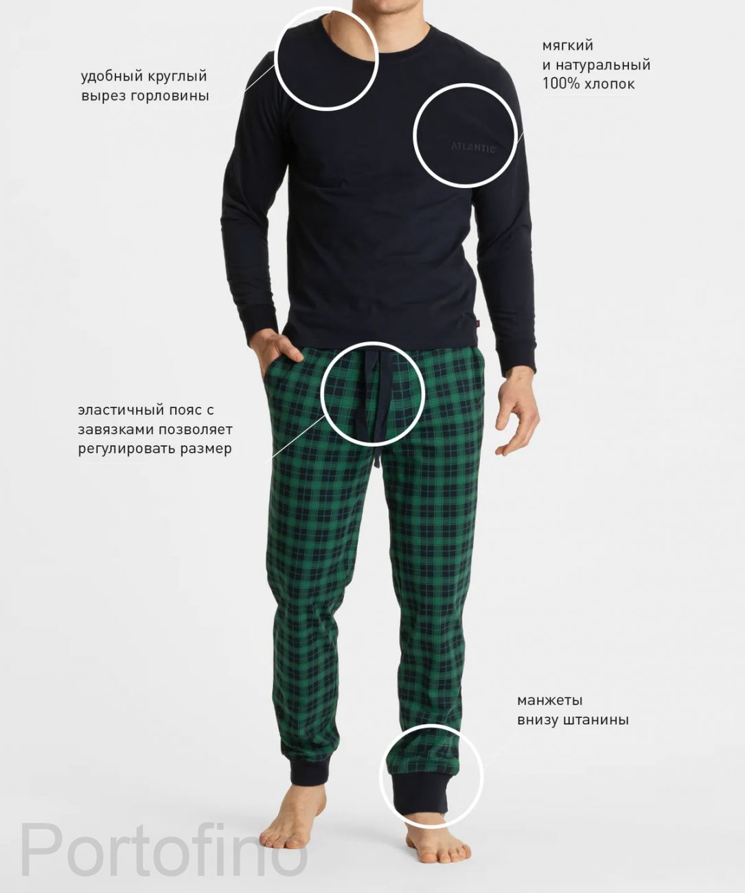 Мужская пижама Atlantic в темно-синем и зеленом цвете из коллекции Homewear - идеальный выбор для комфортного домашнего отдыха. Комплект NMP-361/08 включает в себя футболку с длинными рукавами и удобные брюки. Брюки имеют свободный крой и практичные карманы. Эта пижама подходит как для сна, так и для повседневной носки.