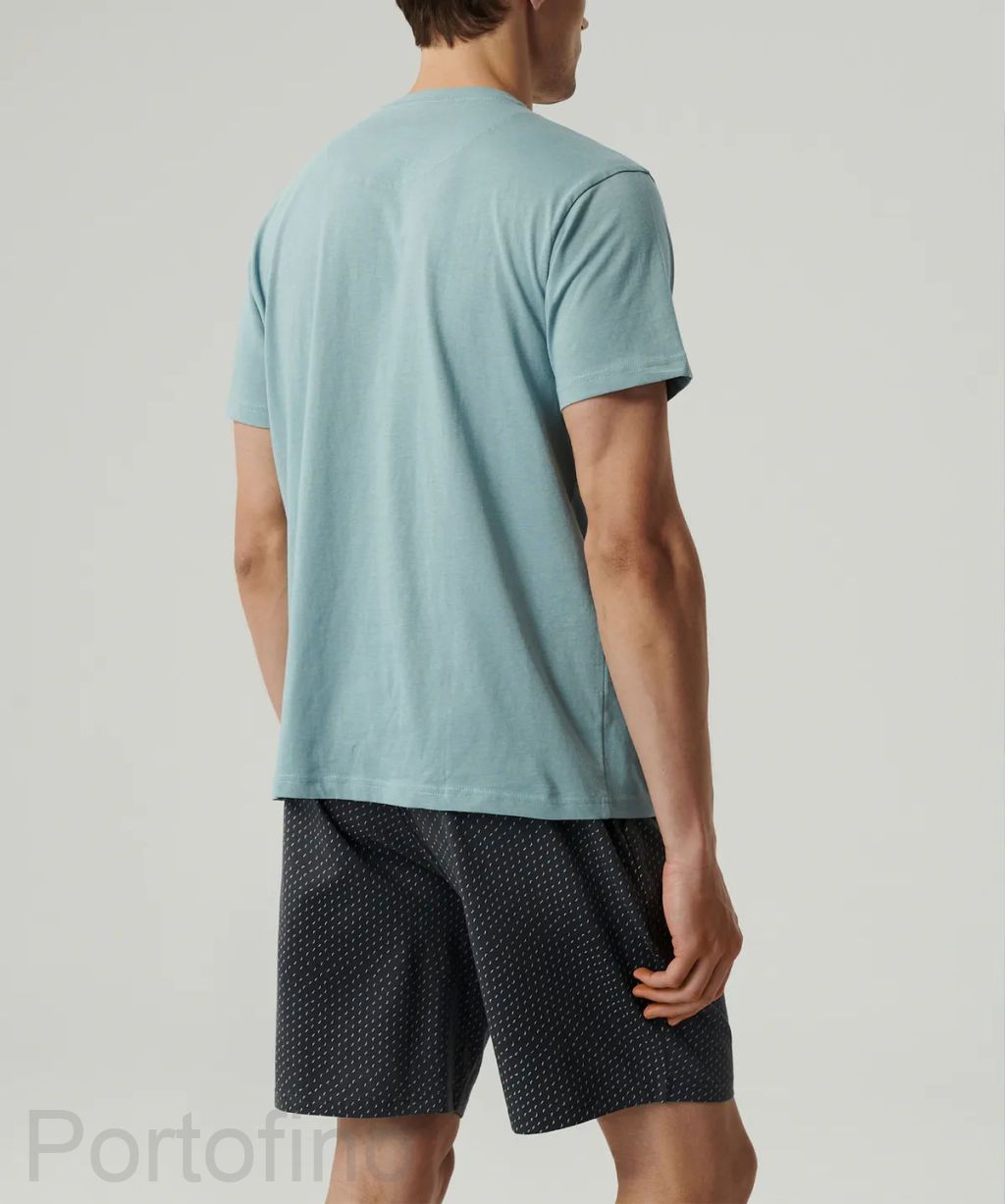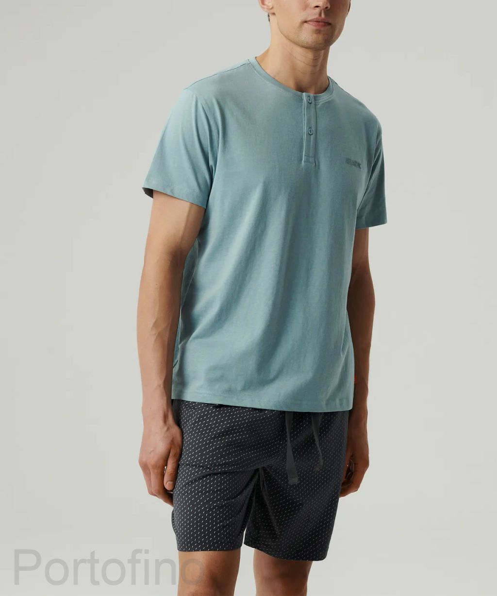 Мужская пижама Atlantic NMP-386 Moon — это удобный домашний комплект из 100% хлопка, состоящий из футболки с коротким рукавом и шорт. Цветовая гамма — нежный голубой и графитовый — создаёт спокойный и стильный образ. Футболка имеет классический круглый вырез и свободный крой, шорты оснащены эластичным поясом и боковыми карманами для удобства. Натуральный материал с мягкой обработкой «персиковый эффект» приятен к телу, хорошо пропускает воздух и обеспечит комфорт в тёплое время года. Пижама отлично подходит для домашнего отдыха, сна и повседневной носки. Коллекция Homewear 2024/2025 года.